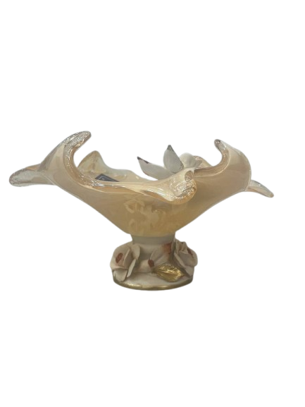 کاسه اجیل پایه دار کرم عسلی مورانو وایت کریستال